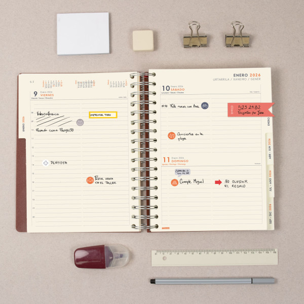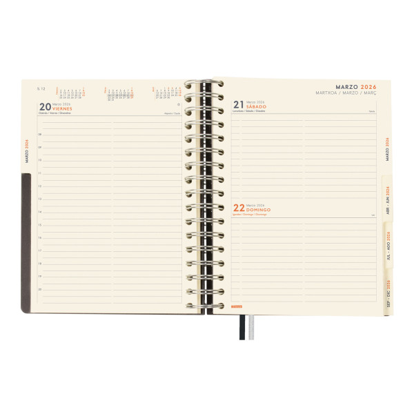 Formato similar a DIN A5; con las ventajas de una agenda portable y una de sobremesa.