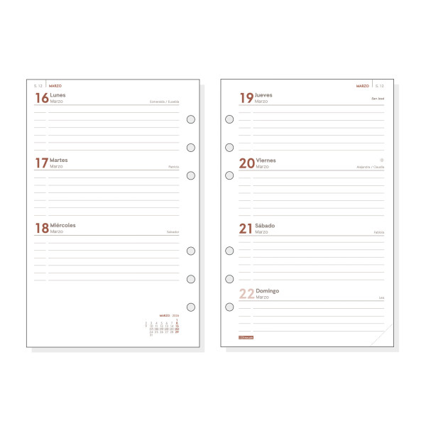 Recambio anual para agendas de anillas Finocam Open. La anualidad contiene la información útil relativa a: onomástica (excepto ed. portuguesa), festivos nacionales, cambios de estación e inicios de los años nuevos chino, musulmán, ortodoxo y hebreo.